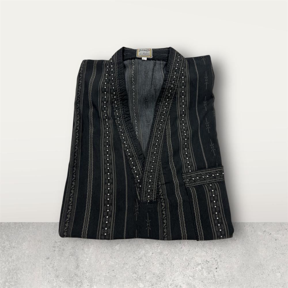 ثوب رصاصي غامق يتميز بتصميم أنيق يجمع بين البساطة واللمسة العصرية. يناسب مختلف الأذواق ويمنح إطلالة مميزة في المناسبات أو الاستخدام اليومي. خامته المريحة ولمساته الدقيقة تجعله قطعة مفضلة في خزانة أي شخص يبحث عن الأناقة والراحة.